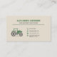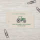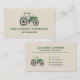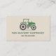 Ett affärskort för lantbruks- eller lantbruksmaskinsunderhåll på en beige bakgrund med en grönt- och grått-jordbrukstraktor i tecknad stil.