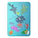 Badmat med söt tecknad av havslevande varelser, inklusive bläckfisk och bläckfisk, haj, fisk, sjöar, havssköldpadda och krabba. Illustrations ©2019 Michael C. Paul Paul