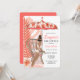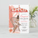 Inbjudan till underkläder bröllosdusch med korall- och rosa tropiska blommor, paraply och afroamerikansk brud att bli. Finns med blond, brun och röd hår och ljus och mörk hud.