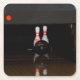 En drink underlägg en bild av två bowlingande stift som snart kommer att slås ner av en bowlingboll för en reserv.