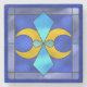 En enkel men vacker blå sten underlägg med nedfläckadens geometriska måne-glasdesign.
