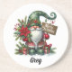 Cute bild på en gnome som håller blommor och ett tecken som säger "God jul" finns på denna Helgdag som underlägg. Underlägg kan vara personlig och består av sandsten med stöd från kork. Behålla bord, använda dig själv eller ge som gåva!