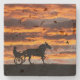 Standard Trotting RaceHäst vid Sunset, Stone Underlägg. Digital Art. Silhouette av standardiserad häst och förarsäg vid solnedgång. Helt anpassade, gör det till din egen.