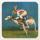 Den här underlägg illustreras med en kaninjocky som rider en tävla som pips.