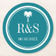 Tropisk tallrikar för papper för monogram för hjärta för för palmträdturkosblått och vit för att segla eller strandtemabröllopsfest. Den eleganta små eller stora drycken underlägg för mig gör bbq, den chic möhippan, stilfull förlovning, flott årsdag, designen för typografi för Etc. för den roliga bacheloretten ankrar cirklar den flott med frakten/fartyget symbol och gränsen. Personligen med monogrammed känd initialer av brud- och brudgumplusen daterar av giftermål. Nätt malltryck för gäster. Moderiktiga partytillförsel för utomhus- repetition middag, mottagande, lyxig glamorös stil för coctailtimmeEtc. Anpassadebakgrundsfärg.