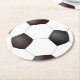 Behändig trämassa stiger ombord pappert underlägg som göras i ett sporttema av en svartvit fotbollboll. Skräddarsy för att tillfoga text till denna roliga kustfartyg. Underbar för partyn, varje daganvända och gåvaidéer.
