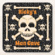En skalle och korsben utgör roligtens underlägg. Underbar för Halloween fest eller bara för roligt.Anpassade så att du kan lägga till din egen text och ändra bakgrunden till färg. Gör en underbar gåva!