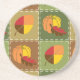 Fyra fyrkanter dekoreras med löv och pumpor i rött, orange, gult och brunt. Vit sömnad ger en dekorativ beröring, ge att mönster återkommer till utseendet av en kvilt och skapar en helt mysigt känsla för hösten.