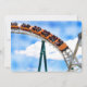 Fotografi av en orange-rulle underlägg hastigheten längs spåret mot ett ljus blå himmel