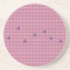 Grafiskt bilder av "3-d" kvadratiska plattor, som ser ut som glas eller keramik, reproduceras över bakgrunden i en rosa. Sju lilor är slumpmässigt utspridda över området. ***Del av samordnad uppsättning - BKM2e.