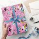 vitkaninen är sen för ett viktigt daterar på detta slående in papper. Vitkaniner i aquajackor hoppar till och med ramar mot en kaotisk numrera-fylld rosa bakgrund som är färdig med timglas, tar tid på, och diamanten formar. Perfekt gåvasjal för en Alice i födelsedag eller dusch för underland themed.