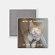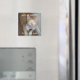 Junipurr som står med sitt varumärke ansikte på en magnet