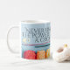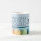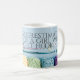 Korsmatad kaffe mugg, med anpassade garninspirerat ord för en varm beröring med din morgonrutin. Ord på mugg säger "aldrig underskatta kraften hos en flicka med en krona krok", men du kan ändra dem till att säga vad som helst.