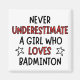 Underskatta aldrig en flicka som kärlek badminton. För flickan eller dam som kärlek spelar badminton - för vuxnor, barn och tonåringar. Lustigt julklapp, födelsedagar, Mors dag, för dig själv "bara för".