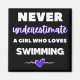 Underskatta aldrig en flicka som kärlek simmar. För flickan eller dam som kärlek simmar. Underbarare julklapp, födelsedagar, Mor dag, "bara för" eller för dig själv.
