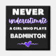 Underskatta aldrig en tjej som spelar badminton. För flickan eller dam som kärlek badminton. Underbar julklapp, födelsedagar, Mor-dag, "bara för" eller för dig själv