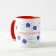 I mugg stater underskattar man aldrig en kvinnas makt med stickande kunskaper. Det är dekorerat med bollar av blått garn och stickande nål. Det här är en roligt gåva till alla som kärlek stickar, snöre, garnhantverk, kräftningar eller skapar.