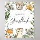 Ge är dina gäster i en härlig riktning med vårt lilla guestbokstecken, med vattenfärgade trädsdjur och elegant handskrivet stil-typsnitt.