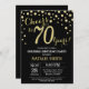 Överraskad 70:e födelsedagsinbjudan med Black and Guld Glitter Diamond Background. Konfetti Guld. Vuxen födelsedag. Manliga Manar eller Kvinnor födelsedag.
