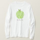 En t-skjorta för 2nd klasslärare som presenterar en illustration av ett grönt äpple med vittext i storformat ", understöder klasslärare" i vit. Personifiera den bruna texten som är nedanför med ditt namn.