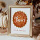Babydusch är ett tecken som innehåller ett vitt skript med texten "Favors" på en illustration av vattenfärgen pumpkin paj, en del av "Fly Cutie Paj Fall Baby Shower Collection". Den här höga höstdesignen kan vara personlig med ditt budskap nedan, t.ex. "Ta ett". Med varma terracotta och guldbruna toner är det perfekten som avslutar beröring för ett fall eller en pumpad babydusch till förmån för bord.