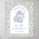Bläddra gästerna till din favör bord med den här eleganten dammiga blåa Perfekten Pear möhippa-skylten. Med en mjuk päronillustration som är inramad i en Fransk gräns och med bågformad design är det perfekten för efterrätt pub, godisbuffets och party favors. Tillgängligt i många-storlekar för kostym i ditt händelserumme.