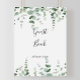 Denna elegant minimalistiska eukalyptus gäst bok är perfekt för ett modernt bröllop eller en modern möhippa. Konstruktionen har vattenfärgad handdragen elegant botaniskt eukalyptus grenar och löv. Gör textraden vid grund på tecknet till din egen genom att inkludera datumet, namnen på bruden och brudgummen eller ett kort-meddelande som "Tack". Det här tecknet kan komplimentera ett bröllop, vilket evenemang som helst eller party.