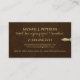 Modern auktoriserad för typografi av professionell, notarie konsult för uppskalning av affärskort med kalligrafi av elegant guld och pennor över en mörk brunt läderbakgrund för en lyxkontakt av exklusiv.