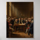 Denna teckning visar på det historiska ögonblick då Amerikanska Founding fathers samlades för att presentera och underteckna självständighetsförklaringen i Philadelphia, juli 1776. I mitten står Thomas Jefferson, John Adams och Benjamin Franklin med värdighet när dokumentet läggs fram inför kongressen. Den högtidliga, men ändå heroiska atmosfären, omgiven av bestämda ledare, fångar en nations födelse och den varaktiga frihetsandan.