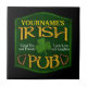 Tillfoga ditt efternamn eller annan beställnings- text till denna namn för puben för coolan irländsk ditt merchandise "irländska Pub". Mycket coolt personlized gåva för dag för St. Patricks, irländskt arv eller någon tid av året. Bakgrund för grönt för Grungevintagelooken med ramen formar och celtic text, harpan och "bra roligt och vänner", och "tur, kärlek och laughteren". Alla designer tar copyrightt på © www.CuteComfy.com 2013