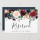 Ange reserverad sittplats vid bröllop med den här chicen smyckets tonade blommigt. Anpassa med två linjer anpassningsbar text i kalligrafi-skript och modern blockering (visas med "Reserved" och namn på gästen med reserverad sittplats), framtagen med lush vattenfärblommor och grönt bladverk i rikens höstskuggor/