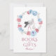 Vinterblått och Rosa Blommigt Babyvykort och skylt på Bord. Storken är omgiven av en krans med vattenfärgspennor. Matchande objekt är tillgängliga.