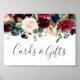 Designad för att matcha vår raka Bloom bröllop-samling, ger eleganten botaniska tecken gästerna att veta var de ska lämna sina kort och gåvor. Anpassa med en textrad med anpassningsbar i kalligrafi-skriptbokstäver (som visas med "Cards & Gifts"), inramad med rik jewel tonad vattenfärg blommor och grönt bladage.