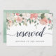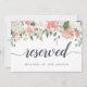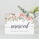Ange reserverad sittplats vid bröllop med chic 5x7-tecken. Anpassa med två linjer anpassningsbar text i kalligrafiskript och modern blockering (visas med "Reserved" och namn på gästen med reserverad sittplats, med en översta gräns av pastellfärgblommor och löv som matchar vår samling i Midsommar blommigt bröllop.