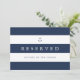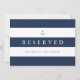 Ange reserverad sittplats vid bröllop med chic 5x7-tecken. Anpassa med två linjer anpassningsbar text (visas med "Reserved" och namn på gästen med reserverat säte) mot en bakgrund av vitt marint blått och vitt rand med ankare.