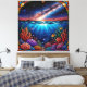 Färgglast konstglas-konstverk med levande undervattensrev och livlig marint liv. Presenteras med en stjärnklar natthimmel ovanför, vilket skapar ett surrealistiskt och vackert naturinspirerat konstverk.