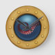 Den här nautiska tematklockan ser ut som porten på en gammal frakt eller ubåt med tanke på ett läskigt havsmonster i havet utanför. Denna punkt är underbar för nautiska tematiska rum, barnrum och de som kärlek steampunk, maritim litteratur eller film.