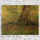 Undergrowth av Vincent van Gogh är en vintage fin konst post-impressionism landskapsnaturmålning. En skogsscen under höstsäsongen med ett träd, löv och undervegetation som byter färg från grönt till gyllene gula och orange.