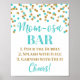 Momosa pub-skylten poster för babydusch i vitt, ljusblått och guld konetti mönster med handskriven stil-skrift. Perfekt för babyduschar och baby sprinkle.
