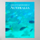 Reseaffisch av tropiska fiskar under vattenfotografi från den Underbara Barriärkyrkan i Queensland Australien i ett modernt, färglöst akvamarinhav stil av färskutskrift.