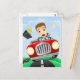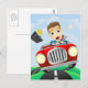 Ung affärsman som kör en snabb klassisk bil vykort