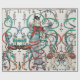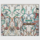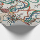 Elegant monogramdesign. Livlig, cool, konstnärlig Art Deco, högklassig illustration, nyckfull brunett ung flicka med turkos blågrön teal orange band virvlar, bevingad kupido och elegant klassisk blomster damask interiör.