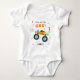 Ung vild och en 1-årsdag Kids Monsterbil Lastbilar Födelsedagsbaby Bodysuit har en söt och färgglad monsterbil lastbil med texten "Ung, vild och en" i modern typsnittskrift accentuerad med siffran 1 och klotter. Nedan kan du anpassa med ditt eget namn. Perfekt för barnets första födelsedagsfirande. Designad av Evco Studio. För koordinerade föremål besök www.zazzle.com/store/evcostudio