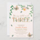 Ung vild och tre persikor-blommigtar 3 års födelse inbjudningar