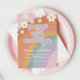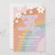 Ung Vild och tre Retro Rainbow 3:e födelsedag inbjudan med daisy.