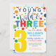 Fira din lilla äventyrares stora dag med vår "Unga, Vild och tre" 3:e födelsedagsinbjudan! Den här lekande designen har fet primärt färg och fräckt polka dots, och skapar en roligt, livfull vibe-perfekt för ett barns party. Den retromoderna stil fungerar underbart för pojkar, flickor eller gender-neutralt firande och skapar det idealiskt för en småbarn-födelsedag, cirkustema eller primär färgad-bäcken.