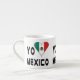 Espresso-kaffet mugg användor ett hjärtformade mexikanskt flagga i stället för ord KÄRLEK, eller AMO. Design läser YO AMO MEXICO, eller I KÄRLEK MEXICO, och visar på tre sidor. Flagga är grönt, vit och röd med en örn i mitten. Roligt om Cinco de Mayo. Underbar hemmauppvärmningspregift.