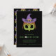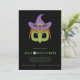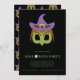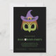 Vänner i inbjudan till dig som halloween costume party i stil, med den här häpnadsväckande halloween-inbjudan med en svep-häxmask på en svart bakgrund som är perfekt för barn costume party.
