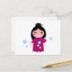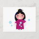Lycklig och glad ung japansk kvinna i lila kimono känner sig välsignad vykort