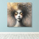 En serene ansikte med stängt ögon är försedd med ömtåliga, guld-accelererade ögonfransar och omgiven av ett klokt, klokt hår
